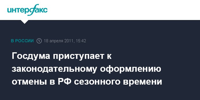 Госдума приступает к законодательному оформлению отмены в РФ сезонного времени