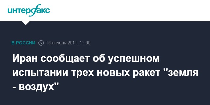 Тегеран. 18 апреля. INTERFAX.RU - Вооруженные силы Ирана провели успешные испытания трех новых противовоздушных ракет, разработанных местными инженерами, сообщил в понедельник министр обороны страны Ахмад Вахиди.