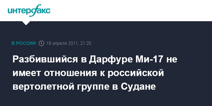 Разбившийся в Дарфуре Ми-17 не имеет отношения к российской вертолетной группе в Судане