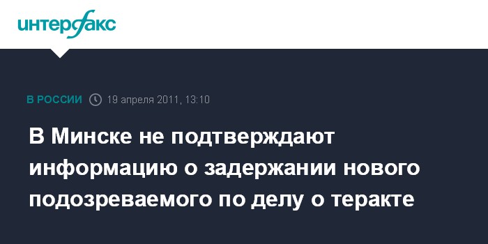 Минск. 19 апреля. INTERFAX.RU - Правоохранительные органы Белоруссии не комментируют распространенную рядом СМИ информацию о новом задержании по делу о теракте в минском метро.