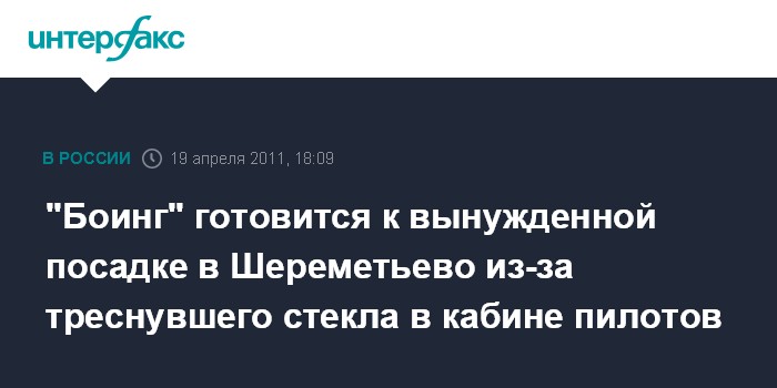 "В процессе набора высоты самолета "Боинг-737", совершающего рейс по маршруту Москва-Мурманск, экипаж доложил о растрескивании стекла кабины. Было принято решение вернуть самолет в аэропорт вылета - Шереметьево", - отметил собеседник агентства.