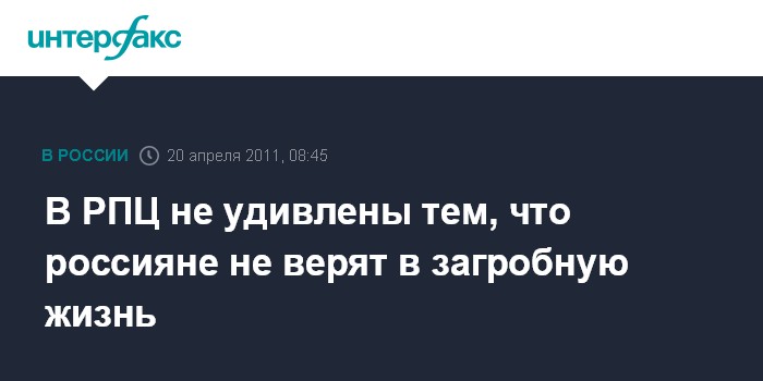 Москва. 20 апреля. INTERFAX.RU - В Московском патриархате не удивлены результатами опроса, согласно которым большинство россиян не верят в воскресение после смерти.