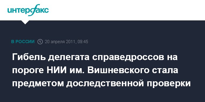 Москва. 20 апреля. INTERFAX.RU - Правоохранительные органы проводят проверку по сообщениям СМИ о гибели у ворот НИИ им. Вишневского секретаря бюро Совета Свердловского регионального отделения партии "Справедливая Россия" Максима Головизнина.