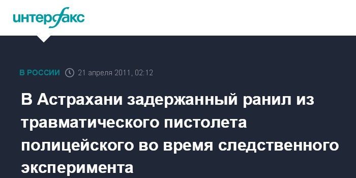 "Задержанный по ст. 158 УК РФ ("кража") житель Астрахани в ходе проведения с ним следственного эксперимента в его квартире достал спрятанный в туалетной комнате травматический пистолет и выстрелил в полицейского", - сказал собеседник агентства.