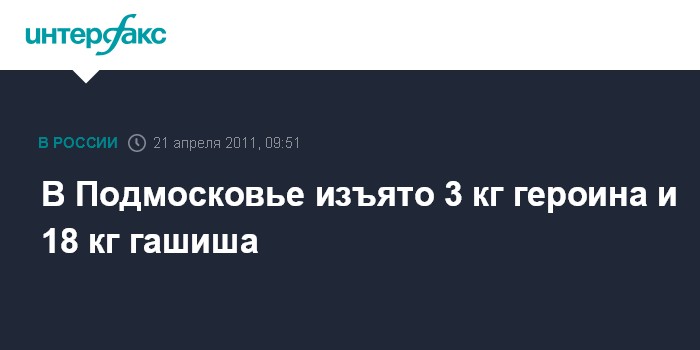 В Подмосковье изъято 3 кг героина и 18 кг гашиша