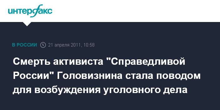 Смерть активиста "Справедливой России" Головизнина стала поводом для возбуждения уголовного дела