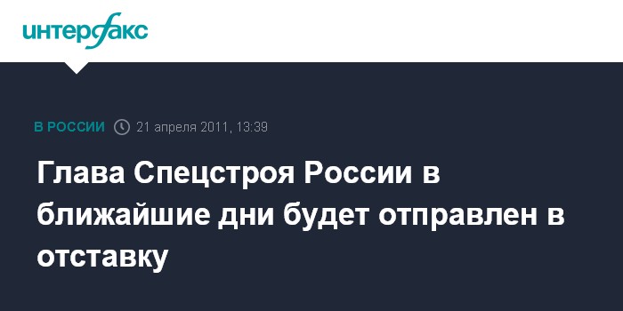 Глава Спецстроя России в ближайшие дни будет отправлен в отставку