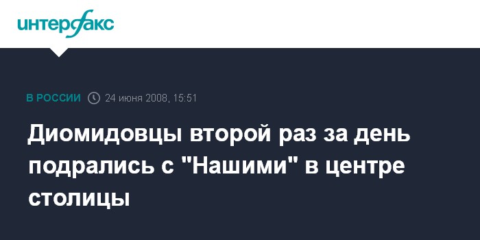 Москва. 24 июня. INTERFAX.RU - В центре Москвы произошла вторая за сегодняшний день драка сторонников епископа Чукотского Диомида с членами православного корпуса молодежного движения "Наши".