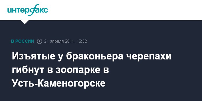 Усть-Каменогорск. 21 апреля. INTERFAX.RU - В зоопарке Усть-Каменогорска (адмцентр Восточно-Казахстанской области) гибнут сотни черепах, изъятых у браконьера в Бескарагайском районе.