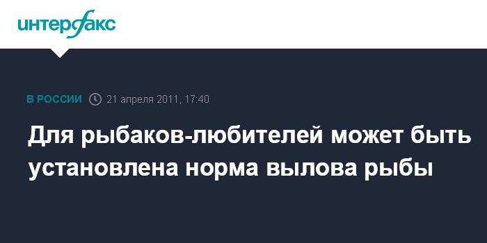 Москва. 21 апреля. INTERFAX.RU - В России для рыбаков-любителей может быть установлена норма вылова рыбы.