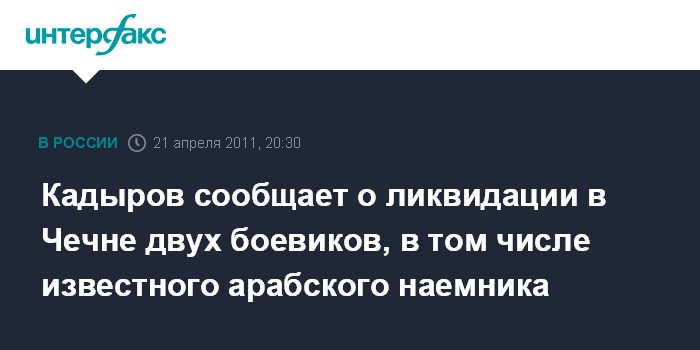 Грозный. 21 апреля. INTERFAX.RU - В Чечне в результате спецоперации в четверг вечером уничтожен известный арабский наемник и бандглаварь Мохханад, сообщил журналистам глава Чеченской республики Рамзан Кадыров.