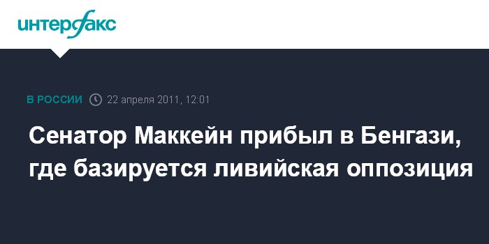 Лондон. 22 апреля. INTERFAX.RU - Влиятельный американский сенатор-республиканец Джон Маккейн прибыл с визитом в ливийский город Бенгази, сообщает в пятницу BBC.
