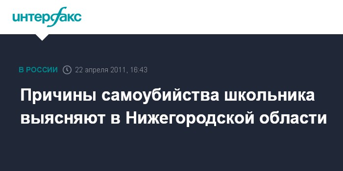 Нижний Новгород. 22 апреля. INTERFAX.RU - Сергачский межрайонный следственный отдел СУ СКР по Нижегородской области организует доследственную проверку по факту суицида 15-летнего школьника в Спасском районе.
