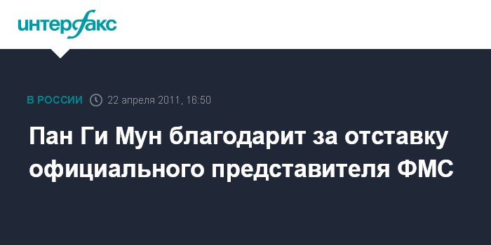 Москва. 22 апреля. INTERFAX.RU - Генсек ООН Пан Ги Мун приветствует увольнение бывшего пресс-секретаря Федеральной миграционной службы РФ Константина Полторанина.