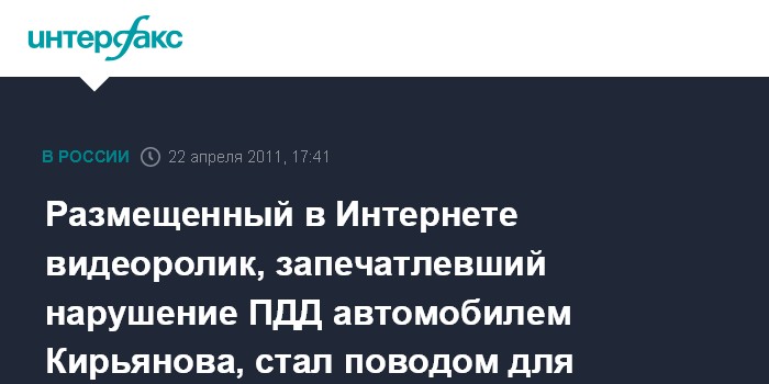 Размещенный в Интернете видеоролик, запечатлевший нарушение ПДД автомобилем Кирьянова, стал поводом для служебной проверки