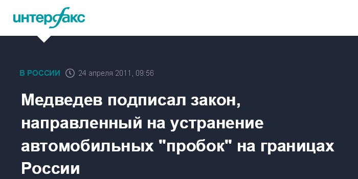 Медведев подписал закон, направленный на устранение автомобильных "пробок" на границах России