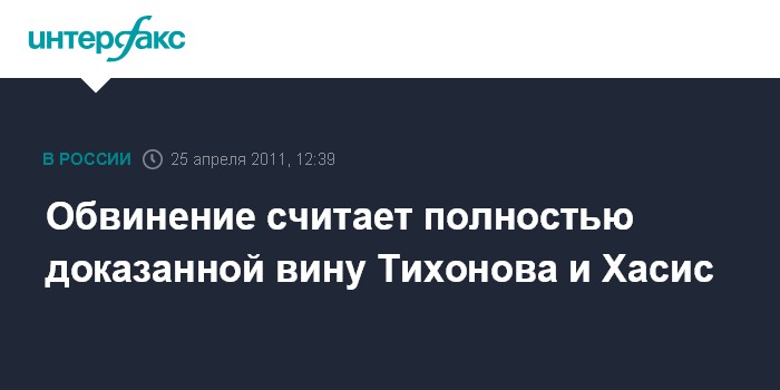 Обвинение считает полностью доказанной вину Тихонова и Хасис