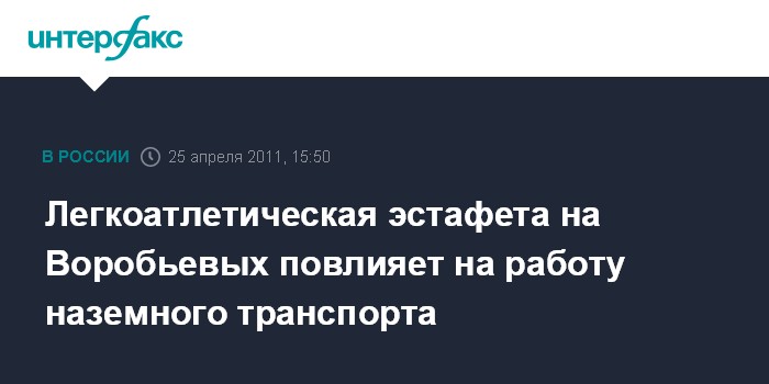 Москва. 25 апреля. INTERFAX.RU - В связи с проведением легкоатлетической эстафеты на Воробьевых горах в ближайший четверг меняются маршруты движения наземного общественного транспорта, сообщили "Интерфаксу" в пресс-службе ГУП "Мосгортранс".