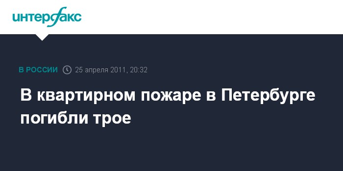 Санкт-Петербург. 25 апреля. INTERFAX.RU - На северо-востоке Петербурга в понедельник вечером в результате пожара в квартире погибли три человека, сообщила пресс-служба Главного управления МЧС по северной столице.