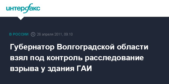 Ростов-на-Дону. 26 апреля. INTERFAX.RU - Губернатор Волгоградской области Анатолий Бровко взял под личный контроль ситуацию с расследованием взрыва у здания городского ГАИ в Волгограде.