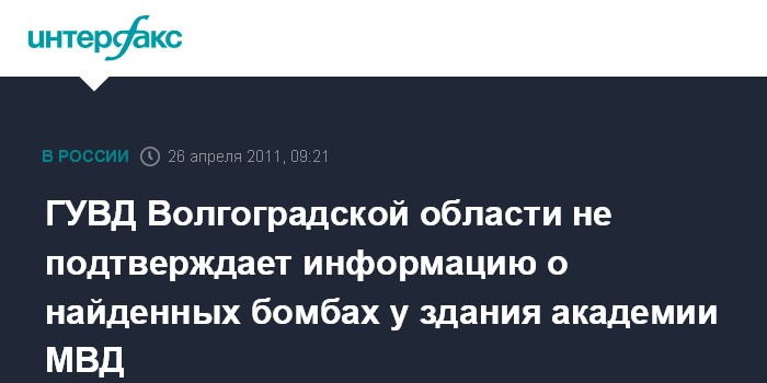 ГУВД Волгоградской области не подтверждает информацию о найденных бомбах у здания академии МВД