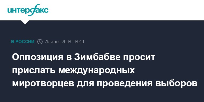 Москва. 25 июня. INTERFAX.RU - Лидер оппозиции в Зимбабве Морган Тсвангираи обратился к международному сообществу в среду через лондонскую газету "Гардиан" с призывом прислать международные войска миротворцев, чтобы обеспечить демократический характер президентских выборов в его стране.