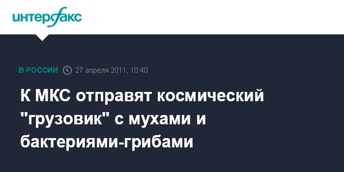 К МКС отправят космический "грузовик" с мухами и бактериями-грибами
