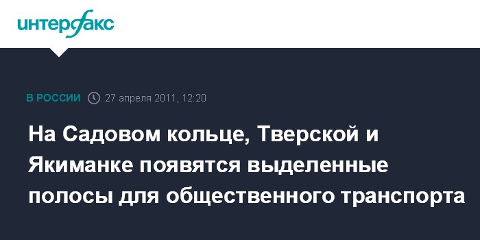 Как сообщили "Интерфаксу" в пресс-службе префектуры ЦАО, принято решение до июля 2012 года крайние правые полосы выделить для движения автобусов и троллейбусов на Садовом кольце, улицах Тверской, 1-й Тверской-Ямской и Большой Якиманке.