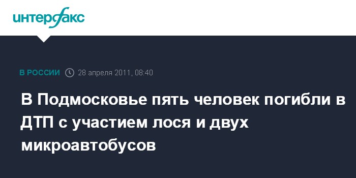 Москва. 28 апреля. INTERFAX.RU - Пять человек погибли в ДТП в Коломенском районе Московской области, сообщил "Интерфаксу" источник в правоохранительных органах в четверг.