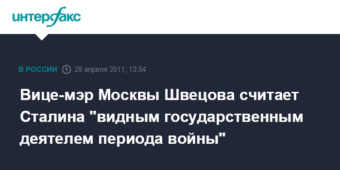 Вице-мэр Москвы Швецова считает Сталина "видным государственным деятелем периода войны"