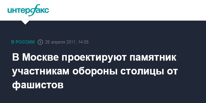 Москва. 28 апреля. INTERFAX.RU - Памятник участникам обороны Москвы может появиться в столице, заявила на пресс-конференции в четверг заместитель мэра города Людмила Швецова.