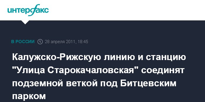 Калужско-Рижскую линию и станцию "Улица Старокачаловская" соединят подземной веткой под Битцевским парком