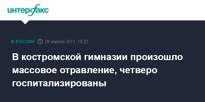 Москва. 28 апреля. INTERFAX.RU - В Костромской области проводится доследственная проверка по факту отравления учащихся и работников гимназии в городе Шарье, сообщает СКР в четверг.