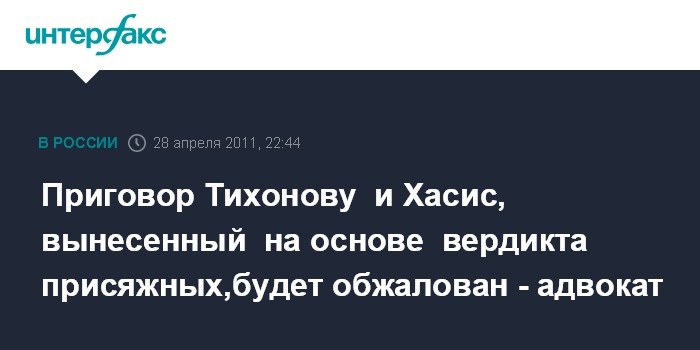 Приговор Тихонову и Хасис, вынесенный на основе вердикта присяжных,будет обжалован - адвокат