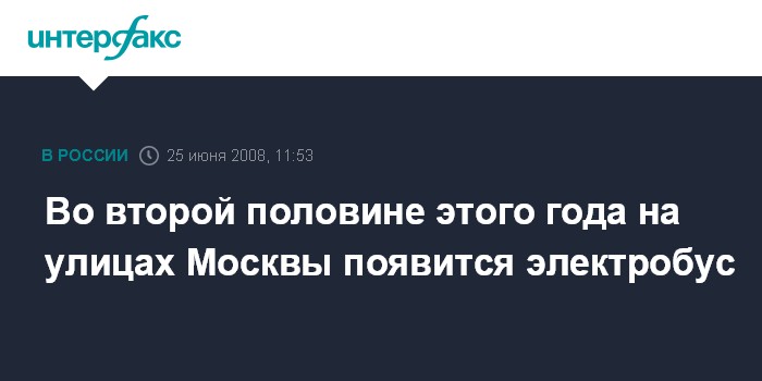 Москва. 25 июня. NTERFAX.RU - Во втором полугодии нынешнего года на улицах столицы появится первый электробус - гибрид троллейбуса и автобуса, сообщил руководитель ГУП "Мосгортранс" Петр Иванов на научно-практической конференции, посвященной 50-летию предприятия.