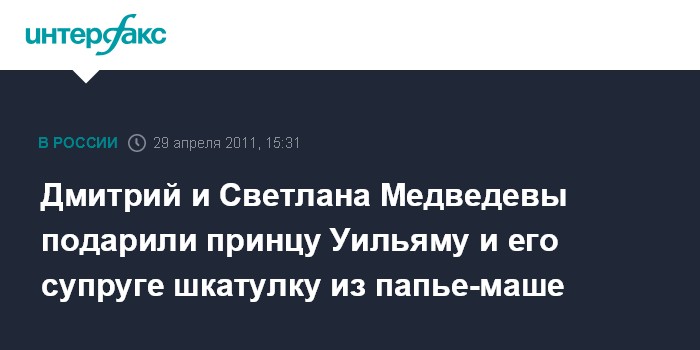 Дмитрий и Светлана Медведевы подарили принцу Уильяму и его супруге шкатулку из папье-маше