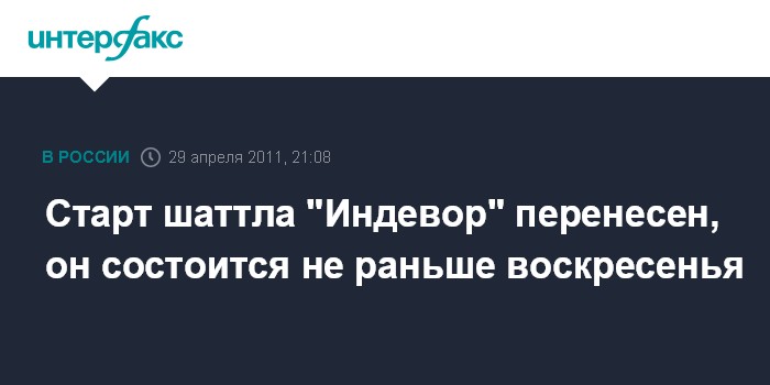 Вашингтон. 29 апреля. INTERFAX.RU - Запланированный на пятницу старт американского шаттла "Индевор" отложен по техническим причинам.