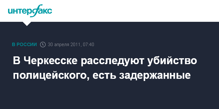 Ростов-на-Дону. 30 апреля. ИНТЕРФАКС-ЮГ – Полицейский убит в городе Черкесске, сообщили агентству "Интерфакс – Юг" в правоохранительных органах республики.
