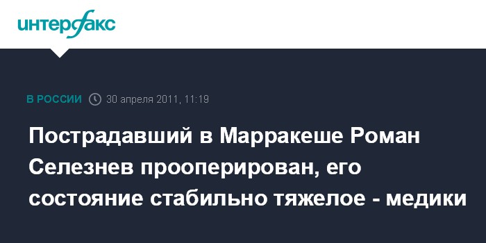Пострадавший в Марракеше Роман Селезнев прооперирован, его состояние стабильно тяжелое - медики