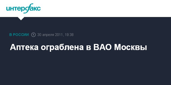 Москва.30 апреля. ИНТЕРФАКС - На востоке Москвы неизвестные ограбили аптеку.