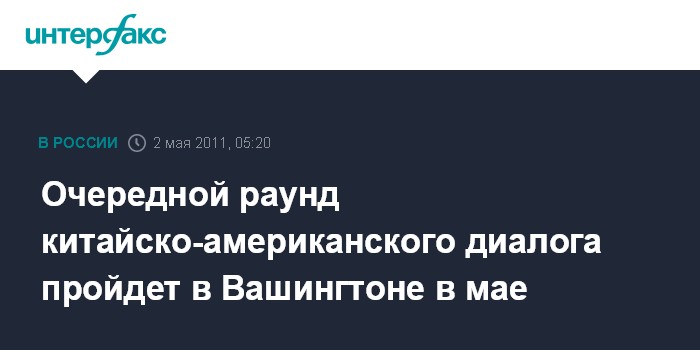Пекин. 2 мая. ИНТЕРФАКС-КИТАЙ - Очередной, третий раунд китайско-американского диалога стратегического и экономического диалога состоится 9-10 мая 2011 года в Вашингтоне, объявил МИД КНР.
