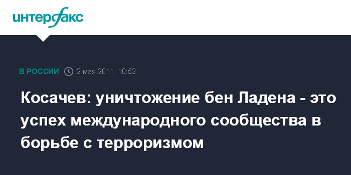 Косачев: уничтожение бен Ладена - это успех международного сообщества в борьбе с терроризмом