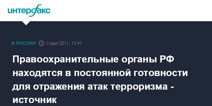 Правоохранительные органы РФ находятся в постоянной готовности для отражения атак терроризма - источник