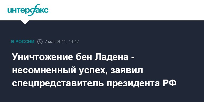 Уничтожение бен Ладена - несомненный успех, заявил спецпредставитель президента РФ