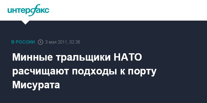 Брюссель. 3 мая. ИНТЕРФАКС - Минные тральщики НАТО расчищают подходы к порту Мисурата в Ливии, сообщило в понедельник вечером военное командование Североатлантического альянса.
