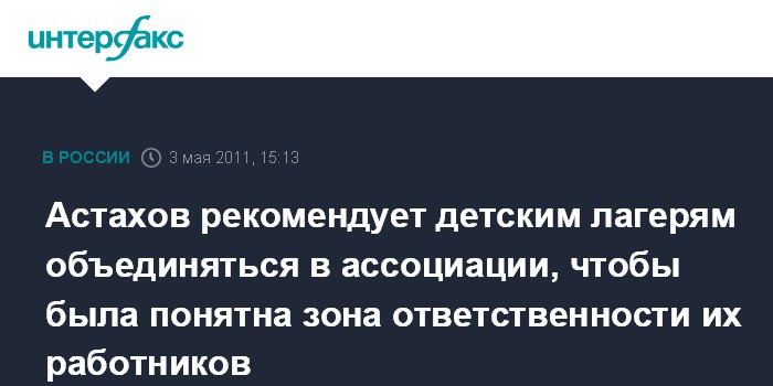 В ходе совещания по вопросам организации летнего отдыха детей, проводимого президентом РФ Дмитрием Медведевым, Астахов в качестве примера привел Тюменскую область, где учреждения, осуществляющие детский отдых и оздоровление, объединены в одну ассоциацию. "Мне кажется, надо рекомендовать всем региональным детским оздоровительным учреждениям объединяться в подобные ассоциации", - предложил он.