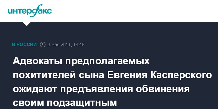 Адвокаты предполагаемых похитителей сына Евгения Касперского ожидают предъявления обвинения своим подзащитным