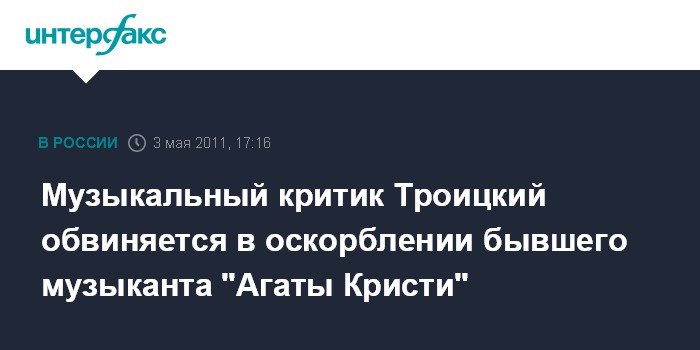 Музыкальный критик Троицкий обвиняется в оскорблении бывшего музыканта "Агаты Кристи"