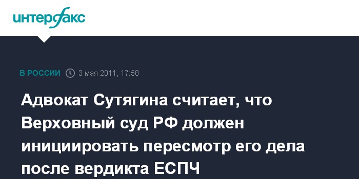 Адвокат Сутягина считает, что Верховный суд РФ должен инициировать пересмотр его дела после вердикта ЕСПЧ