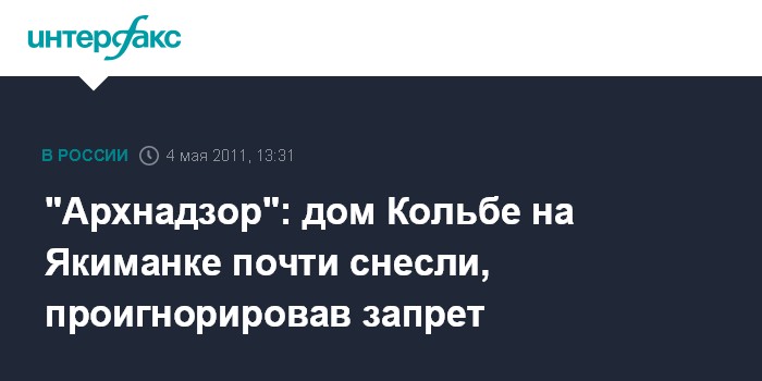 Москва. 4 мая. INTERFAX.RU - Снос доходного дома XIX века на Большой Якиманке продолжается, несмотря на действующий запрет на проведение работ, заявляют в общественном движении "Архнадзор".